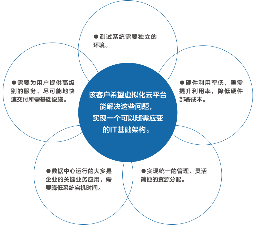 在該企業內部,即使是一些關鍵的業務系統,IT資源和IT系統的利用率不高,系統的大部分資源都未被充分利用起來,還要為其進行雙機熱備以保證系統的連續性。其次,一些運行在單服務器上的次關鍵應用,若為其進行全部的雙機熱備部署,僅硬件一項投入成本就會翻倍增漲,而且還會產生軟件方面的相關費用。此外,為了更好應對生產需求,該企業需要縮短新應用系統交付時間,這就要求企業的IT架構能夠更靈活地進行系統資源的配置,顯然,當前傳統的物理服務器采購、配置、升級方式已經難以滿足公司的需求。